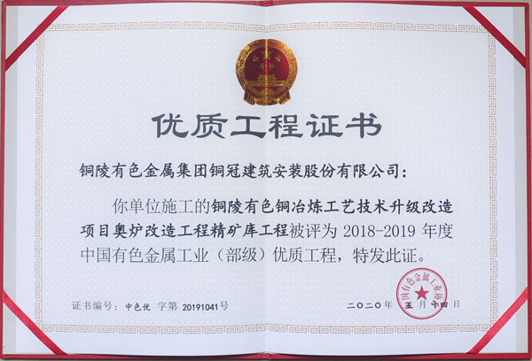 銅陵市2020年優良工程(銅陵有色銅冶煉...